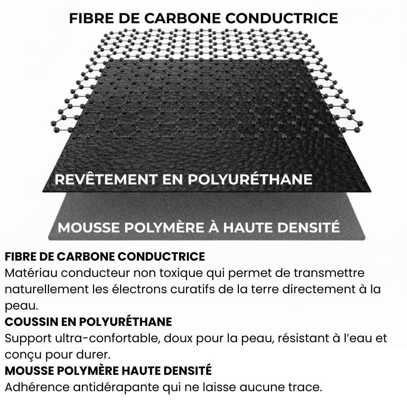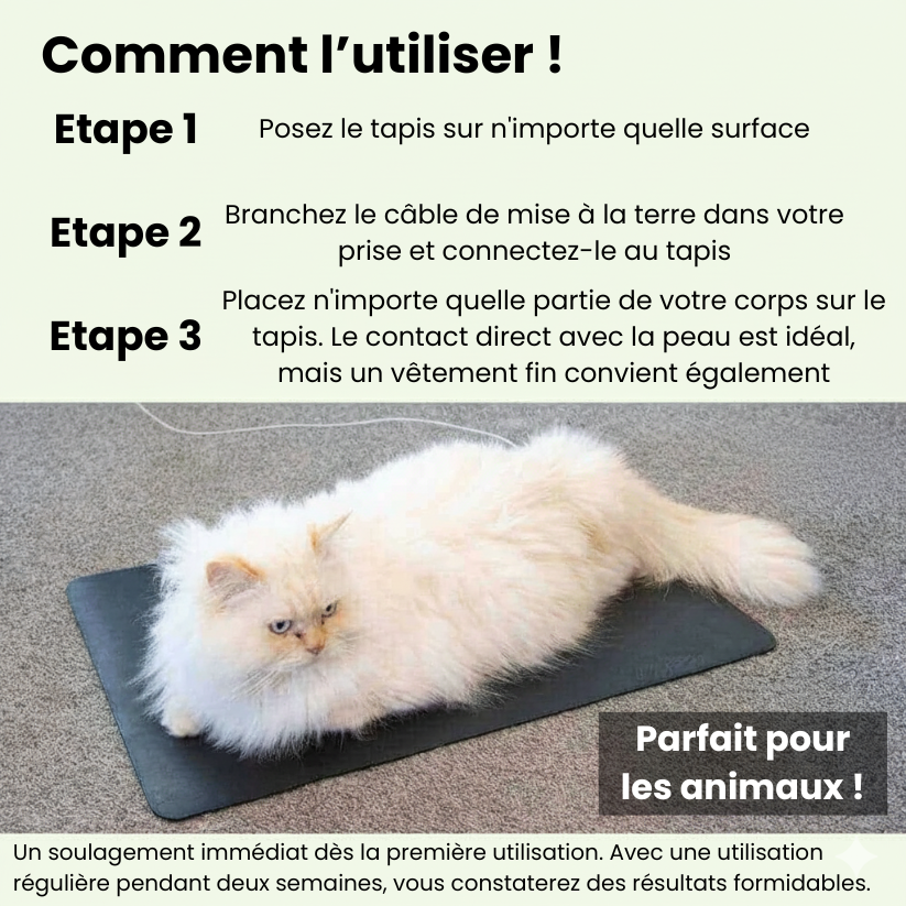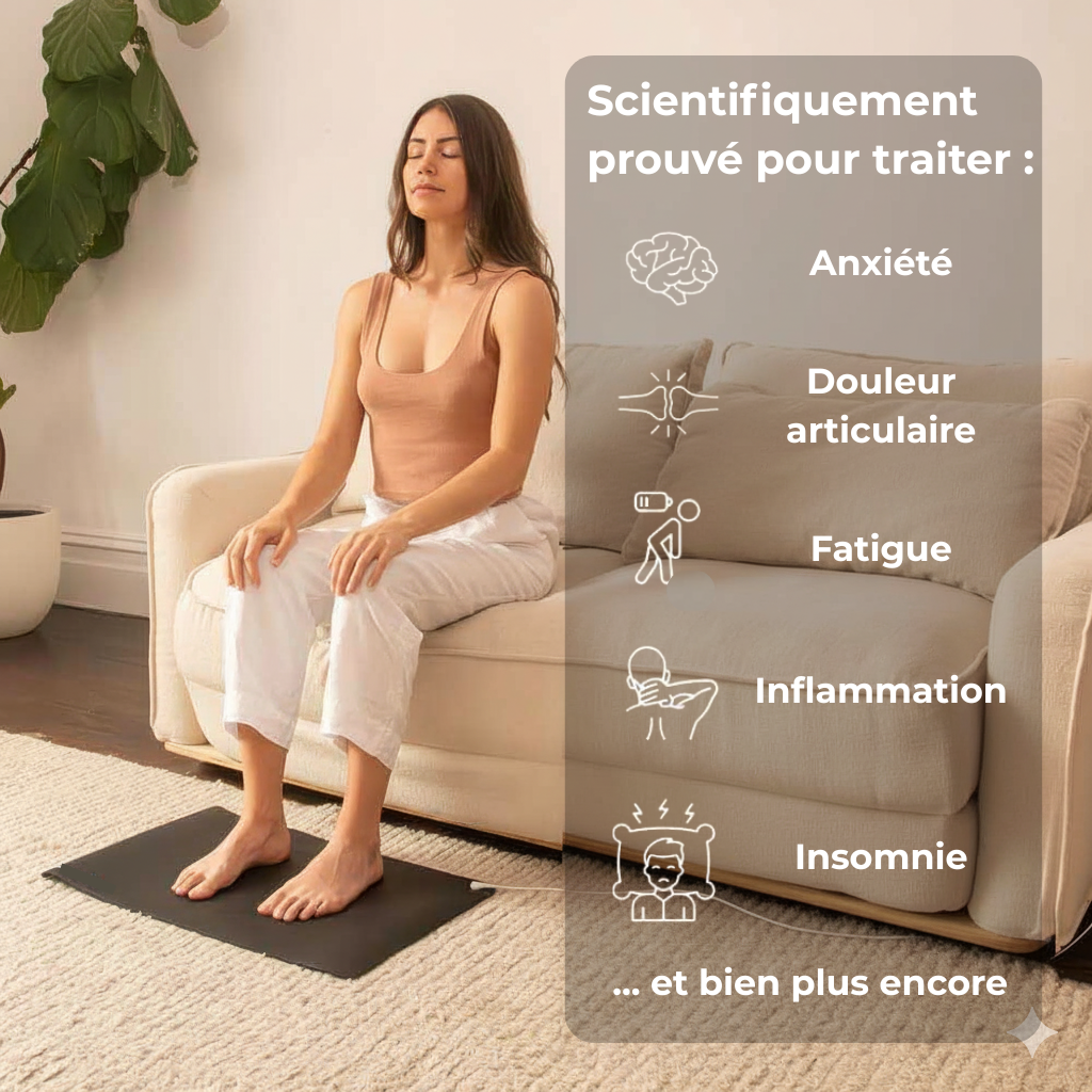 En connectant votre corps à l'énergie curative naturelle de la terre grâce au Sweyny Mat, les électrons curatifs de la terre pénètrent dans votre chair et vos cellules, neutralisant presque instantanément les effets néfastes des interférences électriques externes.
